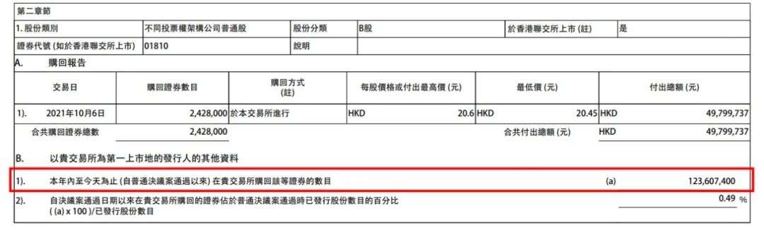 毕竟,从过去来看,小米过去已经多次回购,尤其截止到2021年10月,已回购逾1.23亿股股份,但对股价拉升作用非常有限。