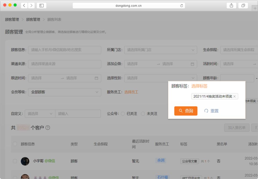 每次活动咚咚来客标签功能会给参与活动的顾客绑定绑定标签,这些活跃的顾客都是门店重要的资产。