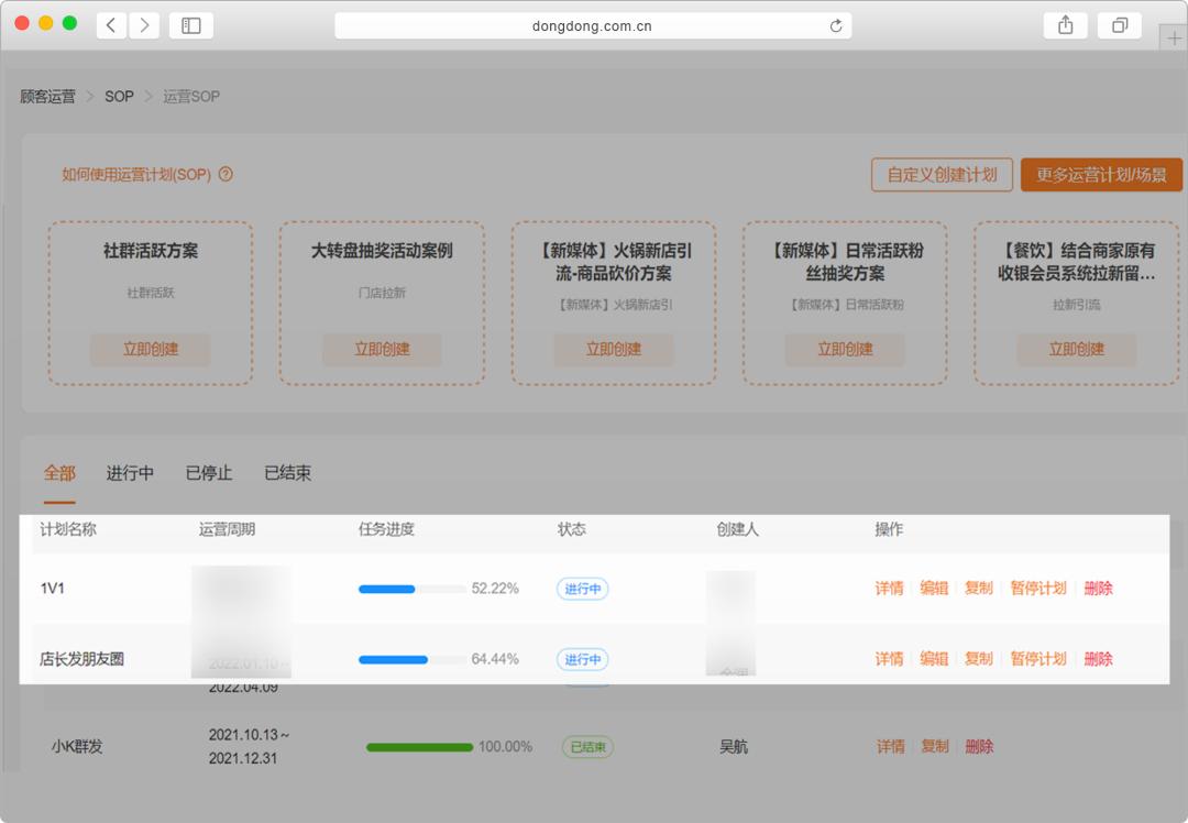 在每次活动之前,九龙冰室都会提前用咚咚来客的SOP功能安排好运营动作。把固定的周期性活动提前用SOP功能规划好。
