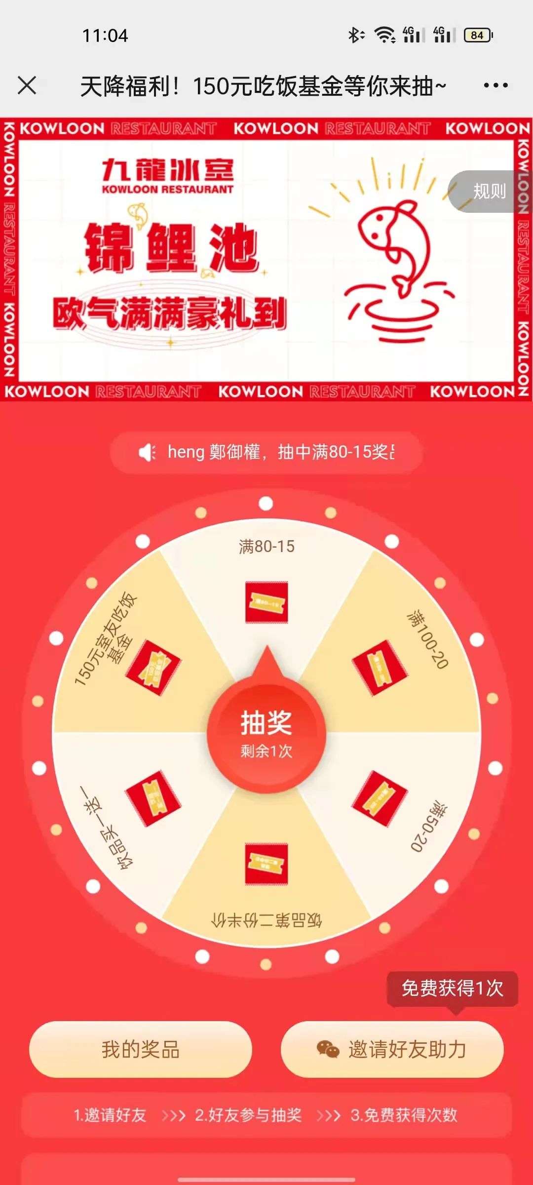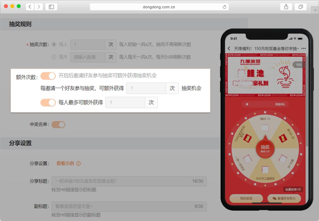 同时幸运大转盘活动支持裂变推广,可以让老客带新客一起领取150元的吃饭基金。