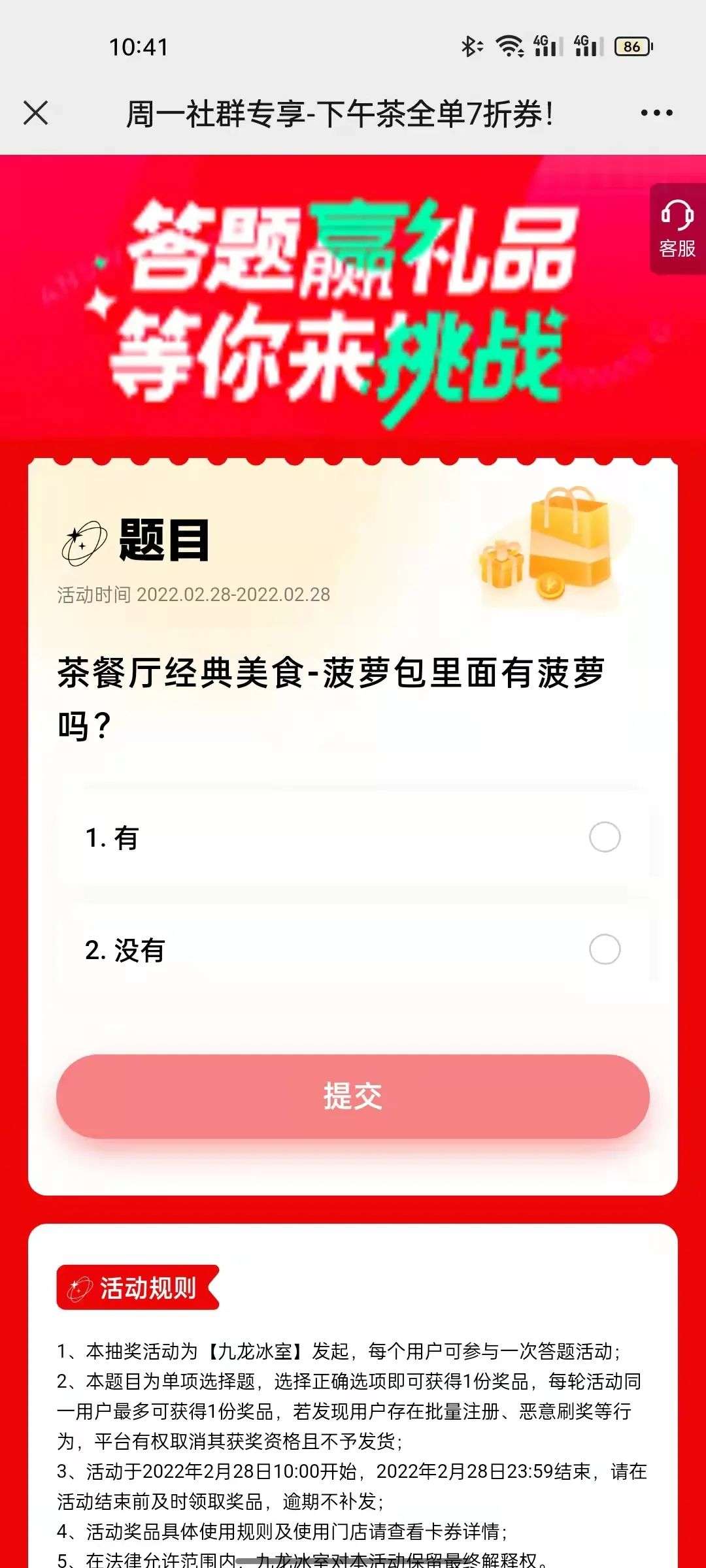 九龙冰室会在每周的第一天会开始在私域中发门店的优惠券,所有的优惠券不是直接丢到群里,而是通过咚咚来客的答题功能,实现互动性的发送。
