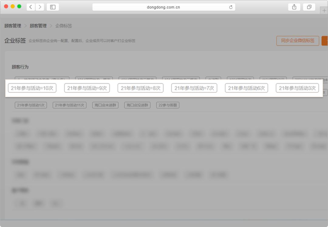 而私域参与活动的顾客,咚咚来客后台会自动为顾客不同的行为,绑定上一个“标签”方便门店分组管理顾客。
