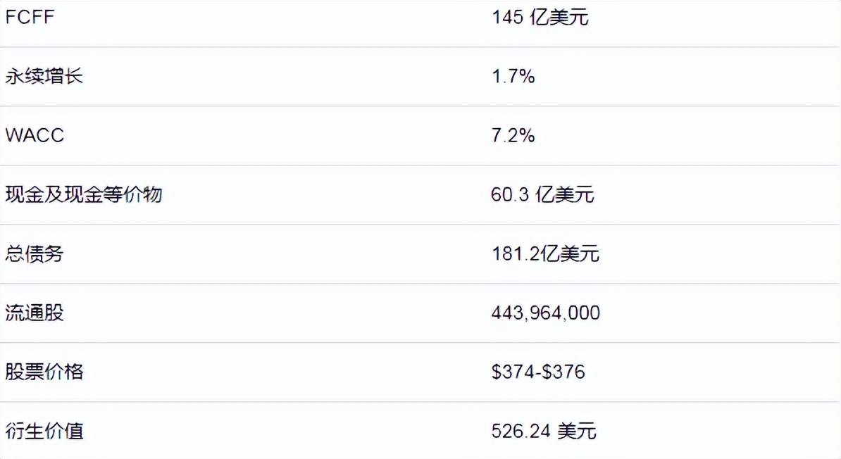 我开始计算 145 亿美元的 FFCF。其目前 7.4% 的 WACC 是因为其贴现率。对于它的永久或永续增长率,我将其设置为 1.7%。