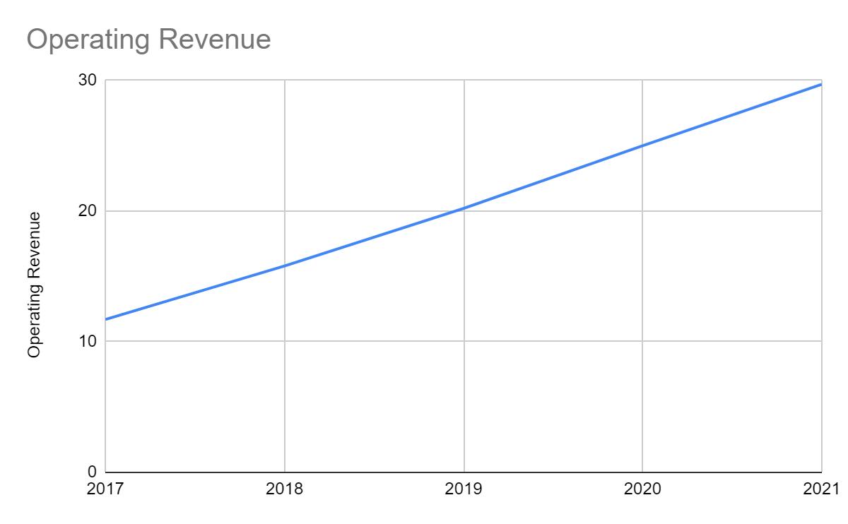 近年来,Netflix 的财务表现良好。其收入从2017 年的117 亿美元增长到 2021 年的 297 亿美元。仅五年时间,其销售额就已经翻了一番多。