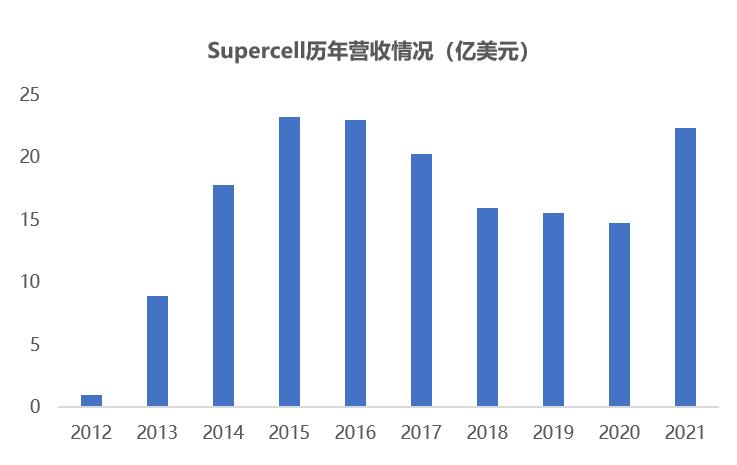 Supercell成立于2010年,是《部落冲突》、《海岛奇兵》、《卡通农场》、《皇室战争》、《荒野乱斗》等热门游戏的开发商。2019-2021年,Supercell收入分别为15.6亿美元(约99.2亿元)、14.8亿美元(约94.1亿元)和22.4亿美元(约142.6亿元),堪称“现金奶牛”。