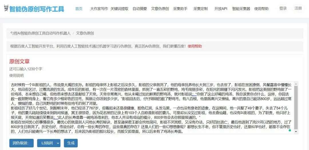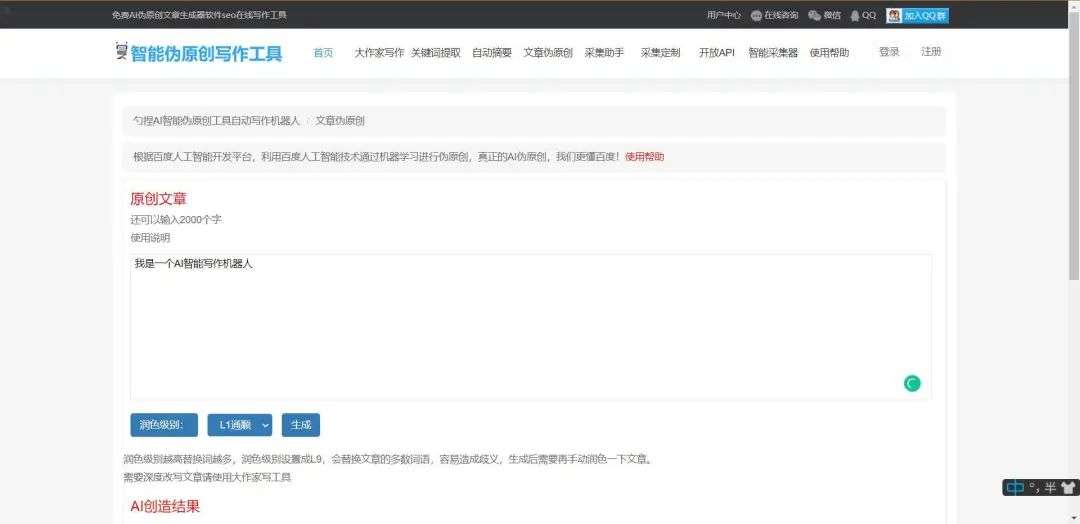 如果说前面的几个工具还是「仅供娱乐」,那么接下来这款《智能伪原创写作工具》就真的有点实用性了。