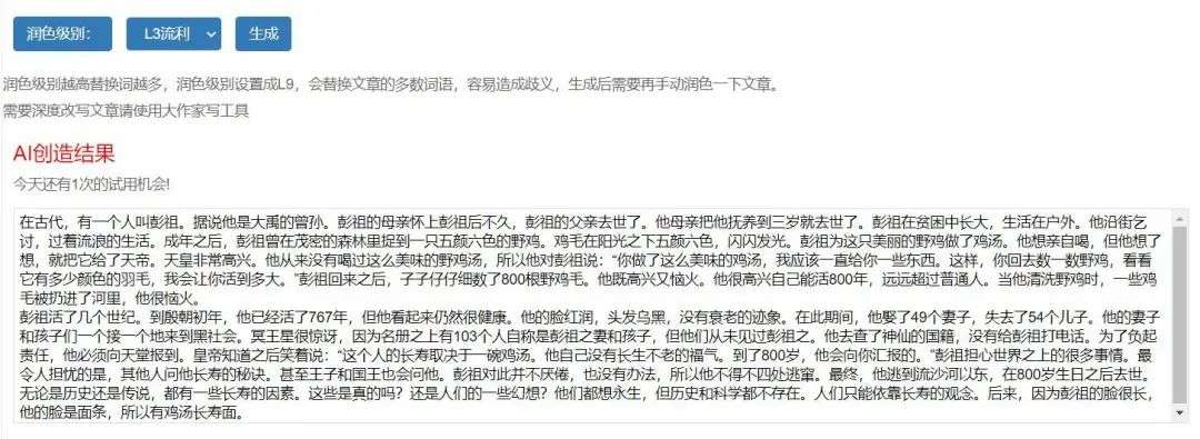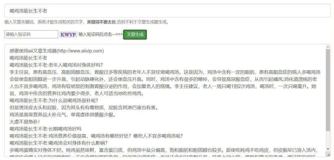 把念念不忘的老题目「喝鸡汤能长生不老」丢进网页中进行测试,效果又如何呢?