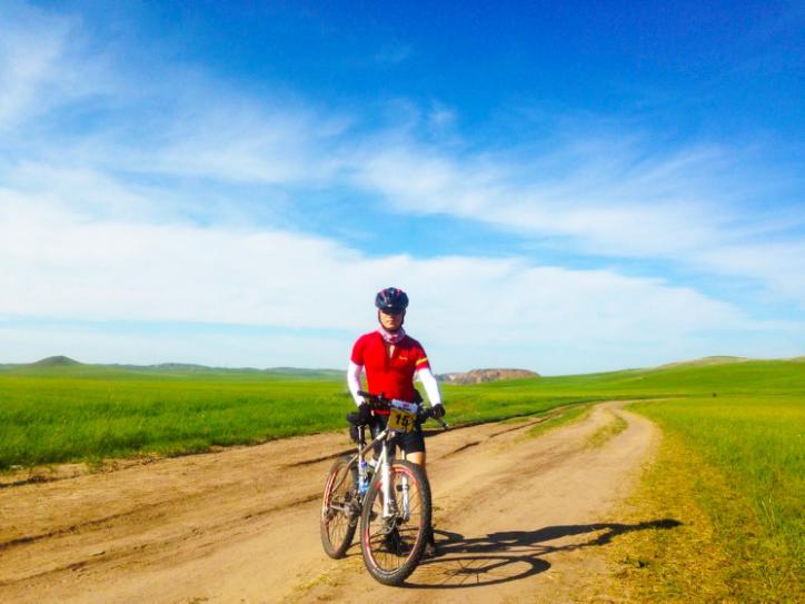 2014年在内蒙古参加铁木真草原王挑战赛,要在两天里完成200公里的山地骑行和一个马拉松,总共2000多人报名,最后只有29个人完成三项赛事——我是第29名,最慢的一个,但我还是拖着疲惫的身体完成了。