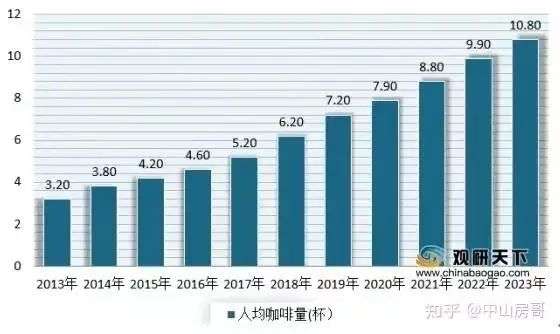 与此相对,观研天下认为,中国人均咖啡量即将在 2022 年突破 9.9 杯。