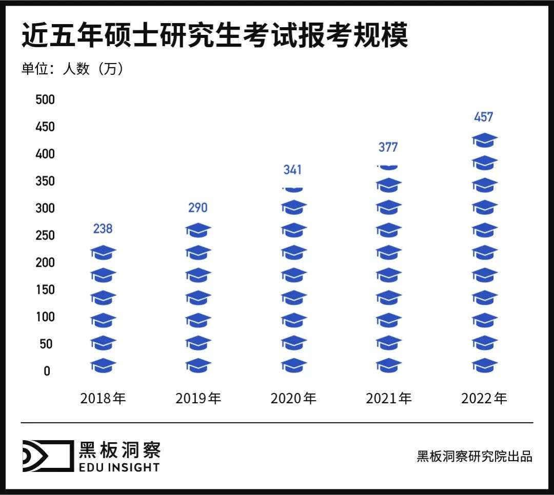 当下,2022 年考研已进入复试阶段,广大学子们都在做最后的冲刺。报考情况看,今年无疑是个考研大年,报考总人数达到 457 万人,较去年相比骤增 80 万(2021 年报考人数 377 万)。另据教育部“2022 届高校毕业生规模预计 1076 万人”这一数据,意味着如果不将往届及社会报考人员计算在内,今年可能有超过 40% 的高校应届毕业生选择加入考研大军,规模空前。那么具体来看,2022 年考研较以往究竟有哪些不同,又因何产生这些变化,我们又该怎样看待日益严峻的考研环境呢?