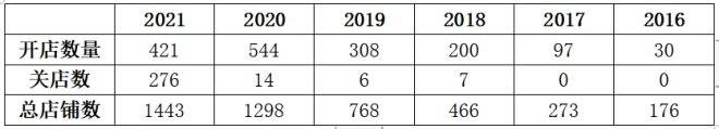 开店数量呈逐年递增趋势,在疫情最为严重的2020年达到开店量波峰544家,随后大幅收缓。而关店量则进一步说明问题——2021年一年关店高达276家,竟是前5年关店量总和的10倍多,可见极速扩张出现的严重冒进问题,其在2020年逆势开出的544家店中大量为“脑热决策”。