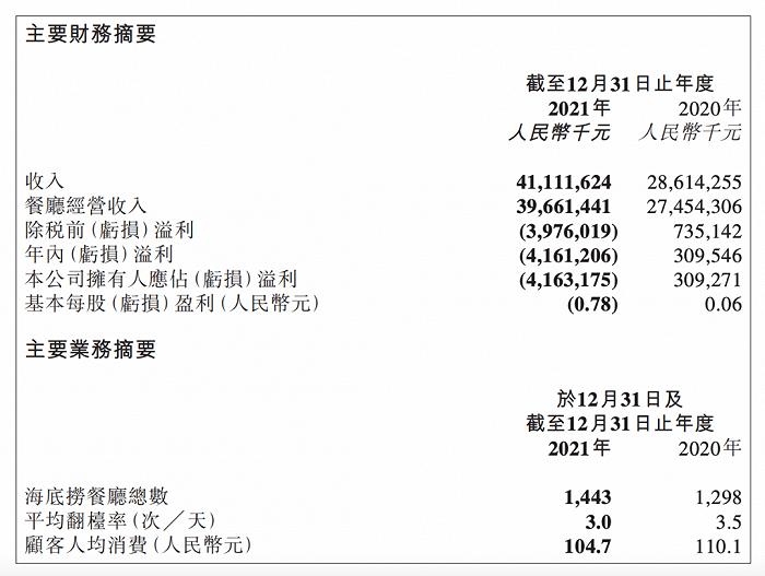 3月23日,海底捞正式公布2021年全年业绩。根据财报显示,海底捞2021年全年实现收入411.12亿元,同比增长43.7%。但2021年全年海底捞亏损高达41.63亿元,这个数字也约等于海底捞2018年至2020年三年的利润总和 (43亿元) ,也就是说,海底捞一年亏光了过去三年挣的钱。