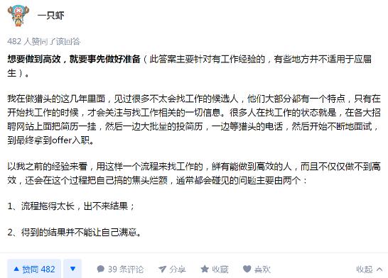 猎头一只虾也提到,采用海量投简历-等电话-面试-入职的候选人,通常会遇到两个问题:流程拖得太长,出不来结果以及得到的结果并不能让自己满意。