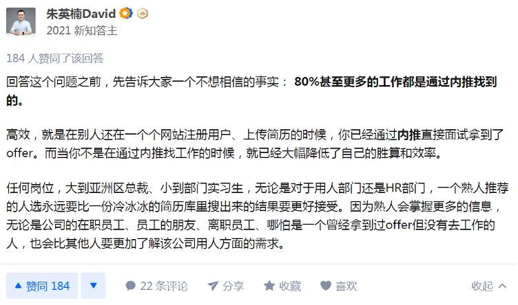 企业内推是成功率最高的方式