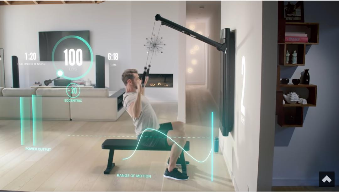 而家用健身设备也在坚持迭代产品,后起之秀Tonal在健身镜两侧安装了通过电磁增添阻力的机械臂,让镜子成为了多部位力量训练,视频演示,数据收集反馈为一体的复合型产品。