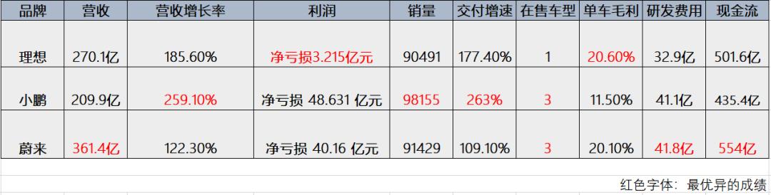 没错,理想的关键性指标领先于其他两者,更重要的是理想距离盈利已经尽在咫尺。
