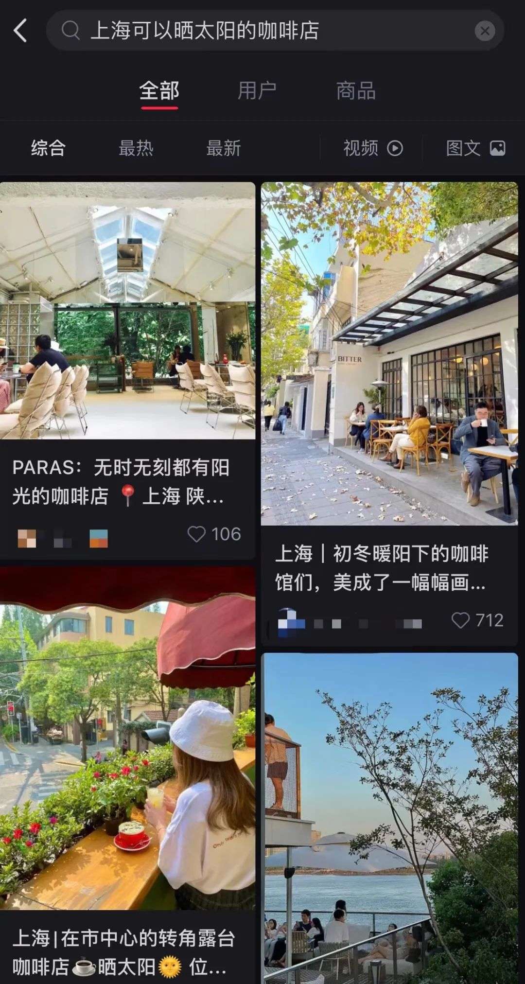 图片来源:小红书截图小红书搜索“上海可以晒太阳的咖啡店”有超过1200条笔记