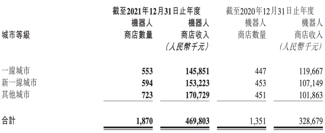 机器人商店的铺设数量与2019年底的825间相比增加了2.27倍,但收入占比却一路下滑。财报显示,这部分的收入占比从2018年的16.8%,到2019年的14.8%,到今年降至10.5%。有分析称,或与机器人商店的体验不佳、密集度增加有关。