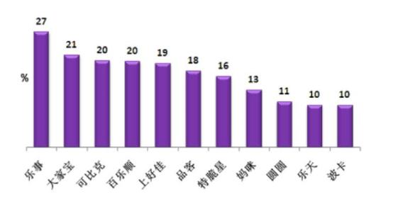据《中国薯片市场消费者报告》显示,在食用频率、购买频率及推荐度这3项最能体现消费者品牌忠诚度的数据上,乐事分别以31%、30%、27%的比例傲视群雄,对其余薯片品牌堪称降维吊打。