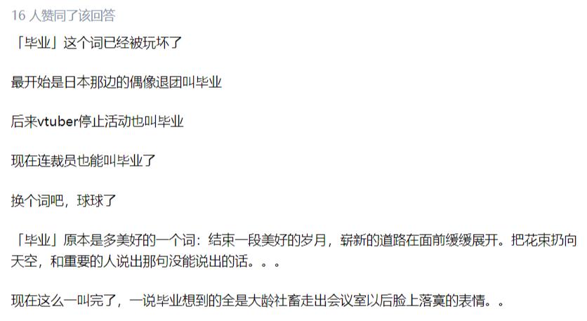 这样看来,在万事皆有梗的今天,关于互联网大厂裁员的「体面称谓」,「毕业」这个词恐怕还真得往后稍稍。