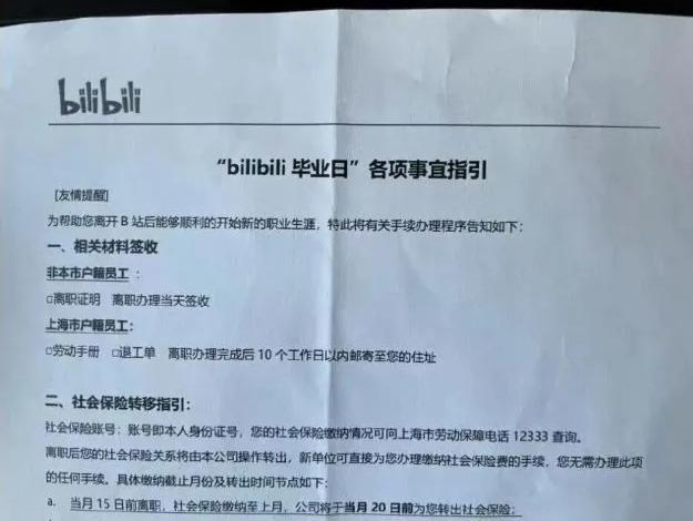图片显示,B站、京东在新一轮裁员中,将裁员称为「毕业」,并将离职指引的通知文件冠名以「毕业须知」,并祝员工毕业快乐。
