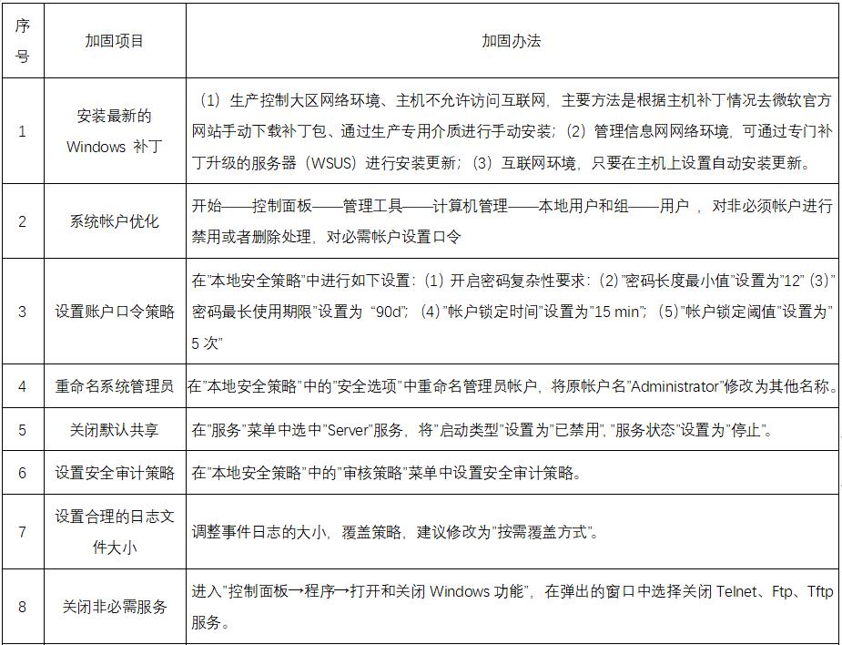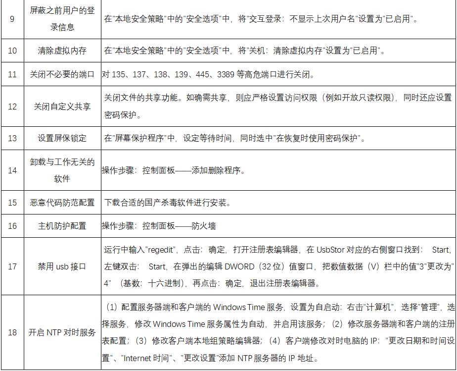 表:传统Windows 操作系统手动安全加固办法