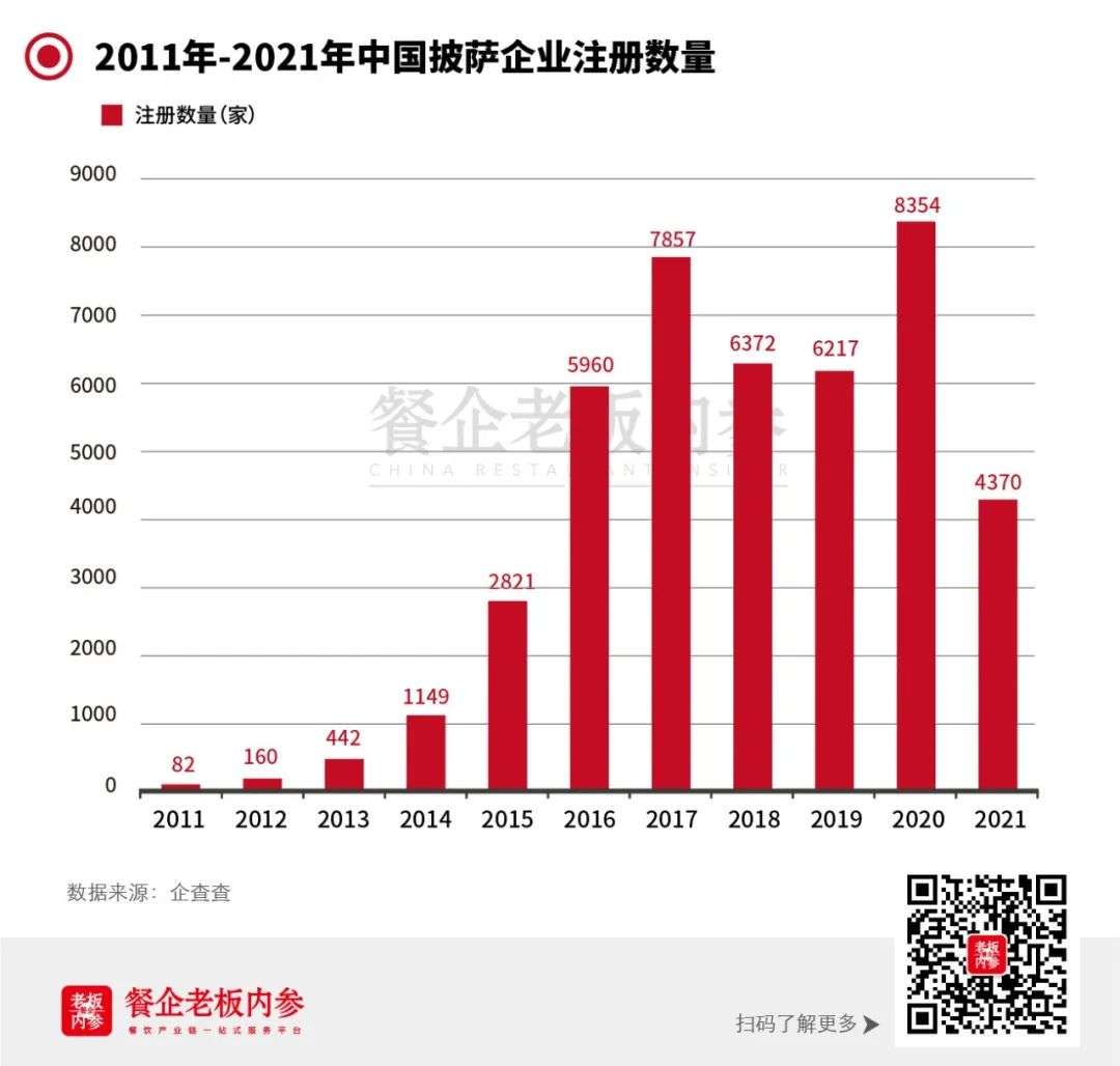 3.0 群雄竞逐阶段: 企查查数据显示,2011年-2021年之间,国内比萨企业注册数量持续上升,2020年达到顶峰国内与比萨相关企业一共有2.5万家。即便遭遇疫情,上半年也新增了3728家相关企业,同比上涨45.1%。