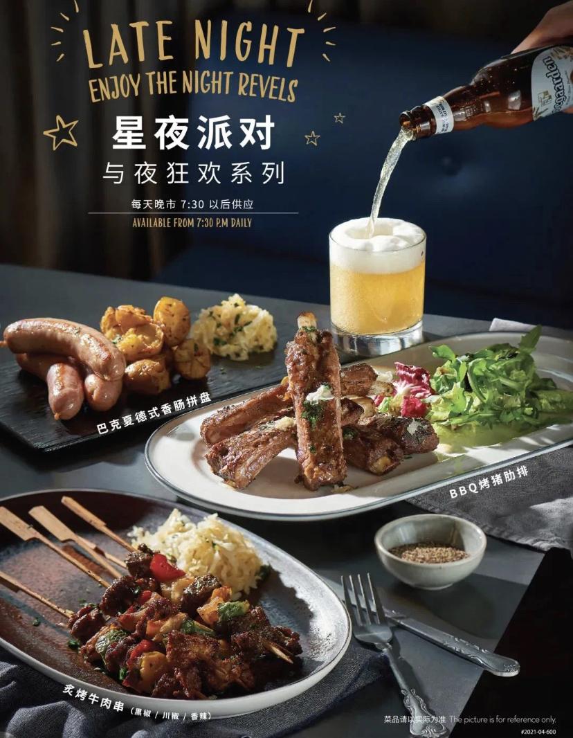 去年,玛尚诺在广州四海城开出了首家黑金店,特色之一就是店内的酒吧直接对外开放,消费者无需进店,就可以坐在吧台上,喝喝饮料和小酒。在它的不少门店,还上新了“星夜派对”的系列新品,包括了烤牛肉串、香肠拼盘、烤猪肋排等,晚市7:30以后供应。