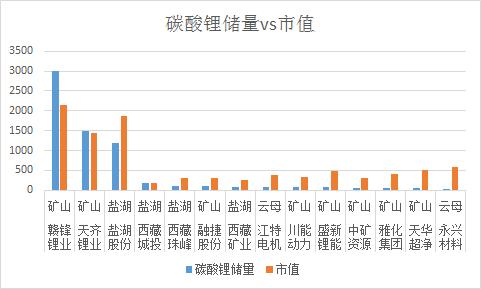 事实上,如果将A股所有的有锂矿的上市公司按市值和储量排列,我们会发现一个近乎于作弊的公式: 碳酸锂储量越小的公司相对市值反而越高。