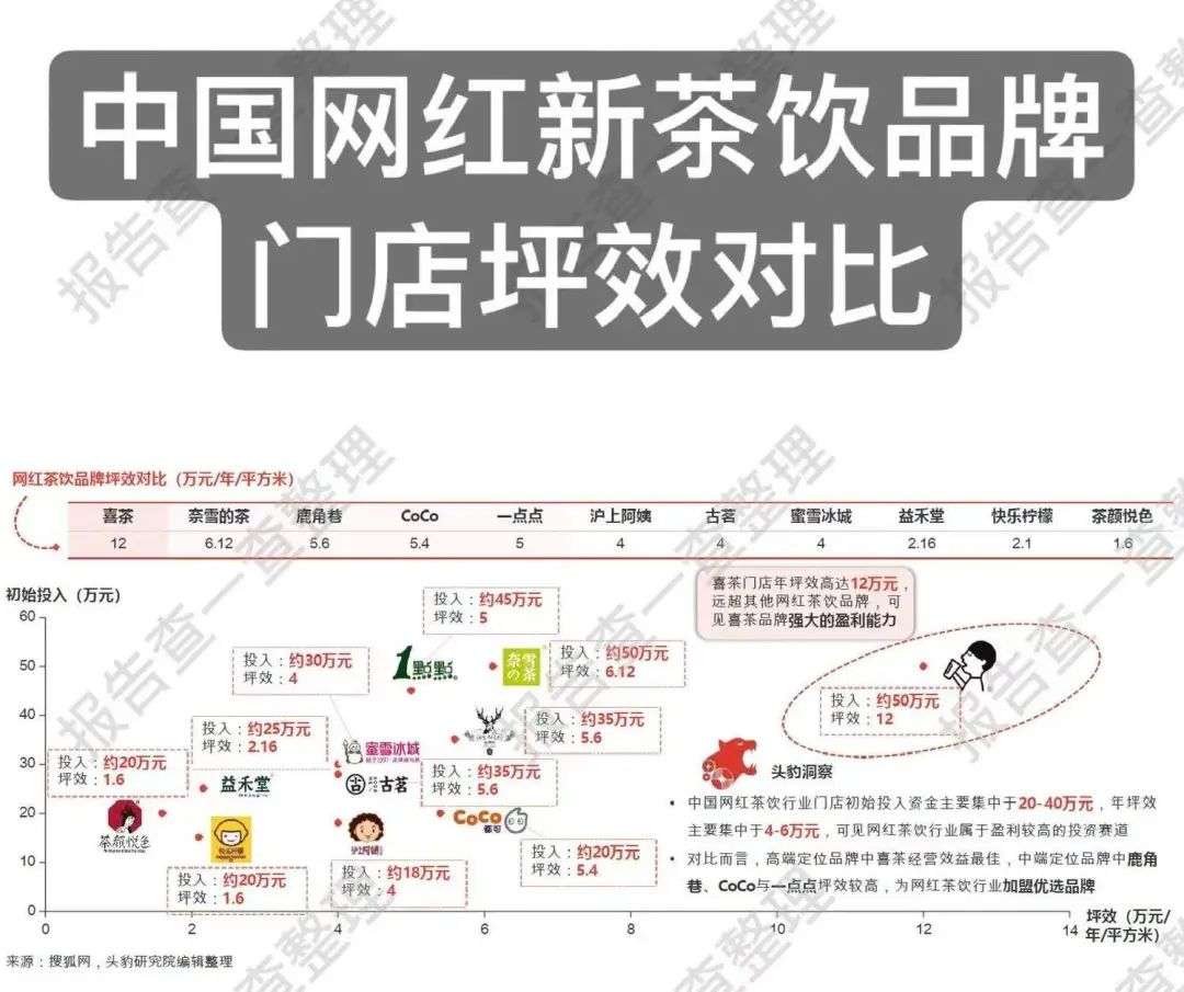 古茗除了有着冷链与多地仓储优势,其他方面的优势却并不显著。头豹研究院整理的《中国网红新茶饮品牌门店坪效对比》中,古茗的坪效与蜜雪冰城接近,却不及同样的中端品牌一点点和CoCo。