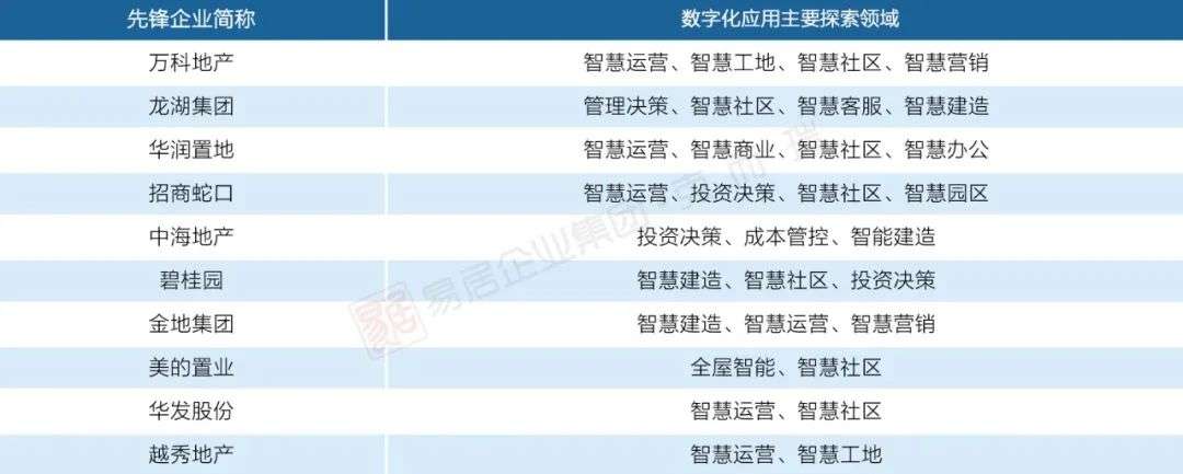 数字化先锋房地产企业已全面覆盖数字营销,此外智慧社区、智慧商业、智慧建造、智能运营等应用场景同样成为当下房地产数字化的热点。从应用深度上,智慧商业因为零售业链接互联网起步较早,所以有如华润置地、越秀地产等在领域内已经进入深水区探索,而全屋智能和智能社区也在国家政策的推动和大量设备供应商的快速发展支撑下进入下一阶段数字化应用的摸索。