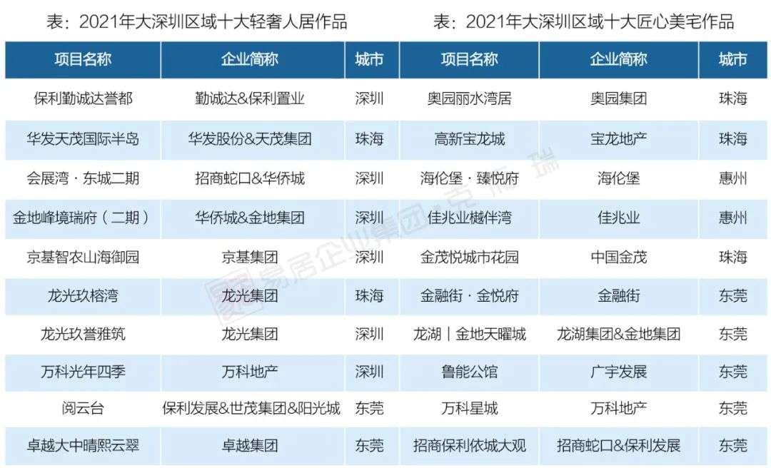表:2021年大深圳区域十大精工豪宅作品