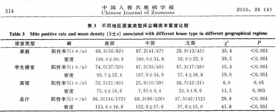 2010年对北部(沈阳、北京)、中部(南昌、上海)和南部(广州、深圳)六个城市的螨虫调查显示,不同地域的螨密度与阳性率存在差别,但每克尘土中的活螨数量都只到百位数级别。