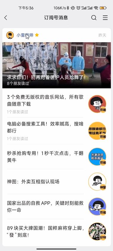 倒是顶部的常读公众号,可能会有点难受了,点进去都没大图看。