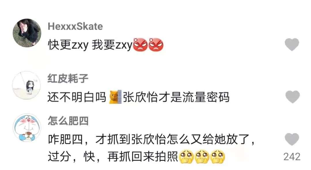 趁着热度他后续又发布了一条拍摄视频,至此,“张欣怡”便成了他的流量密码,之后的每条视频下,基本都有网友在评论区跪求张欣怡出镜。“快更zxy,我要zxy”“跟着我一起喊张欣怡”……