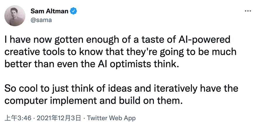 Y Combinator前总裁、Open AI现任CEO Sam Altman,在用过「Wombo Dream」后发推称:“我现在已经对AI驱动的创意工具,有了足够的了解。它们会比AI乐观主义者想象的还要好得多。”