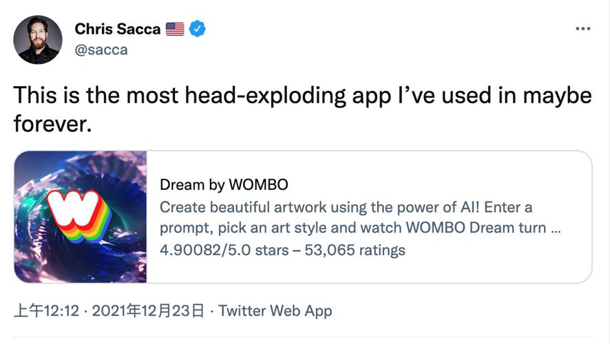在一些资本大佬那里,这款APP也备受青睐。投出Uber、Twitter的风投大咖Chris Sacca,对「Wombo Dream」评价道: “这可能将是我用过的最令人兴奋的APP。”