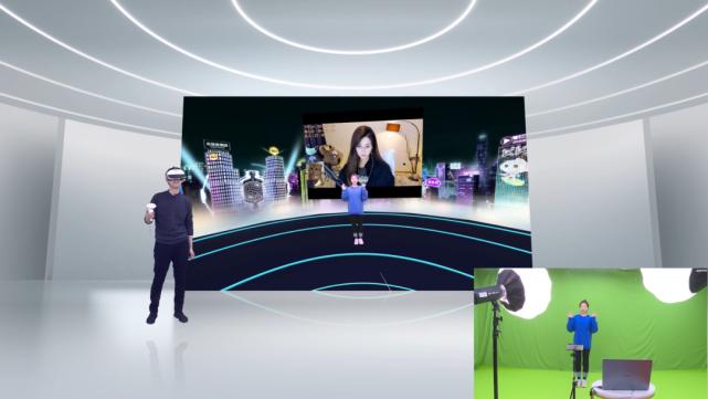 不仅如此,KKVR的“黑科技”更在于可通过绿幕人像抠像技术,以发丝级的细腻抠像水准结合图像处理技术,让主播直接投射进空间内,与用户进行面对面的沉浸式互动;可变换的多重背景风格也为用户提供了更高级的视觉享受。