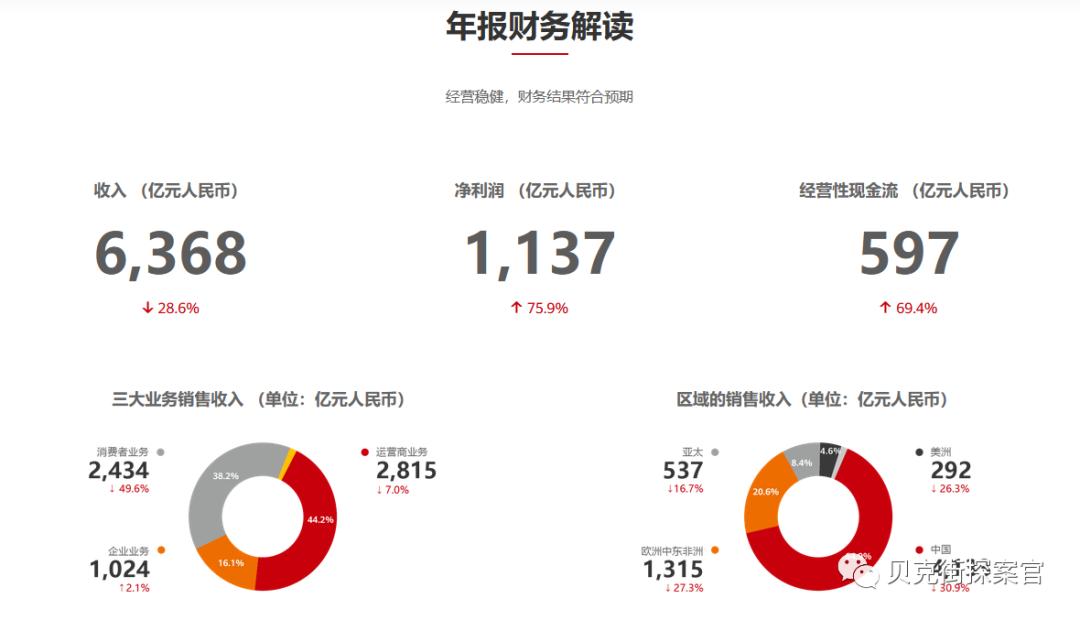 华为2021年营收虽然较去年下降28.6%,但也在市场预期之内,毕竟公司消费者业务收入较去年几乎腰斩,与之相反的是,华为2021年净利润却同比大增超7成,经营性现金流同比大增近7成,达到597亿元。