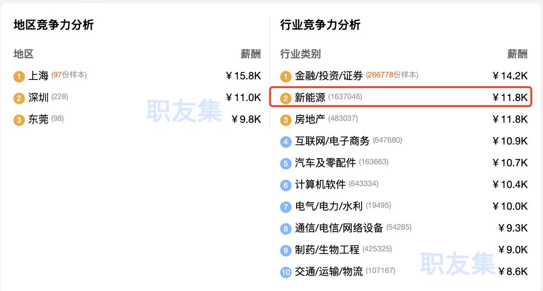 ▲新能源行业薪资竞争力情况(截图自职友集)