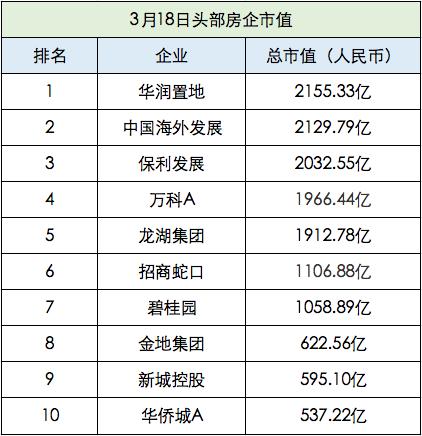 经历3月16日之后的股价大反转,头部房企市值已然呈现另一种格局。