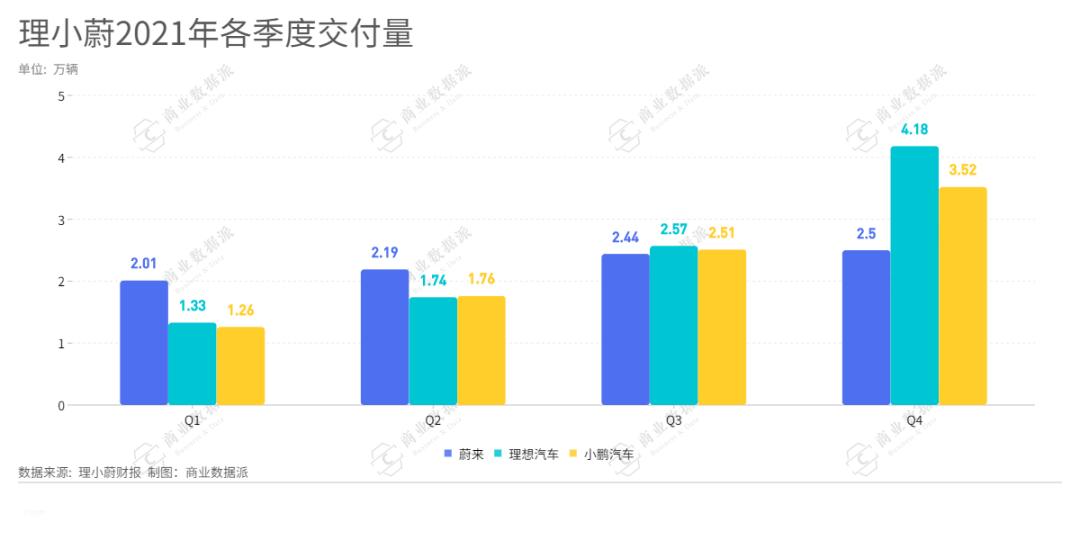 2021年,“理小蔚”量产后,首次年交付量均逼近10万大关,这对于国内整个造车新势力来讲,是一个新的转折点。