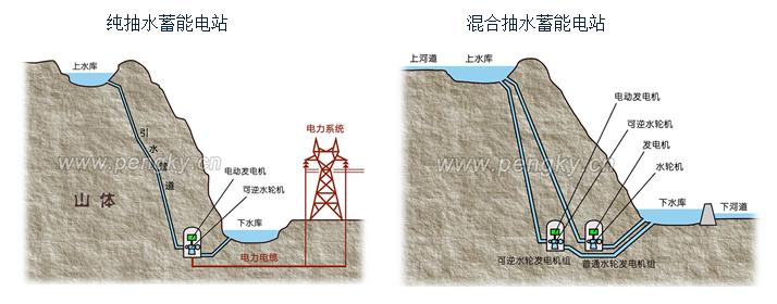 抽水蓄能有两种方式,一种是纯抽水蓄能,国内建的大部分都是这类,比如广州抽水蓄能电站、河北丰宁抽水蓄能电站;另一种是混合式抽水蓄能,是在纯抽水蓄能的基础上安装有普通水轮发电机组,可以利用上河道的水流发电。后者既有储能的作用,又拥有常规水电站的功能。
