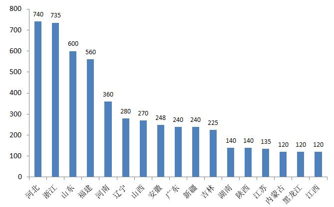 图15: 国内各地在建抽水蓄能装机容量(单位: 万千瓦),资料来源:国家能源局