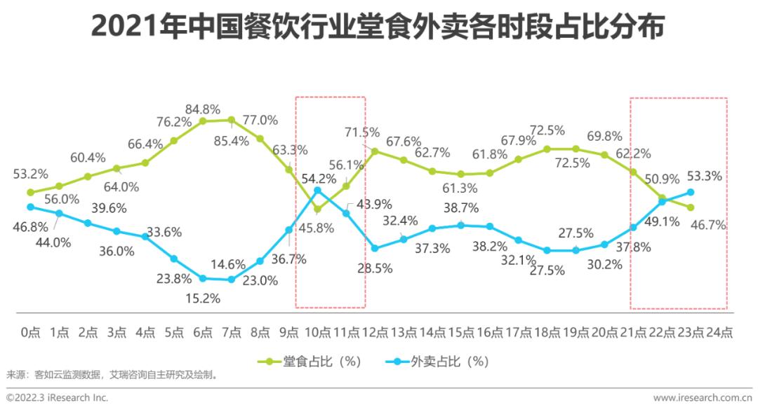 即时配送行业兴起受益于餐饮外卖平台在中国的飞速发展。然而,餐饮外卖的配送需求存在明显的潮汐效应。客如云监测数据显示, 10-11点和22-24点外卖比例会出现反超或与堂食平齐的情况。外卖配送订单需求存在明显波峰波谷周期,这导致即时配送的运力资源在其余时段会存在资源闲置可能,为了提高运力服务资源的盈利能力,即时配送服务商趋向于兼顾优势时段的规模效益并发力需求差异化较大时段的业务盈利性。非餐需求高度发展会带来需求差异化,其中非标准或高交付要求的订单对于专业化强的运力服务需求会愈发凸出。
