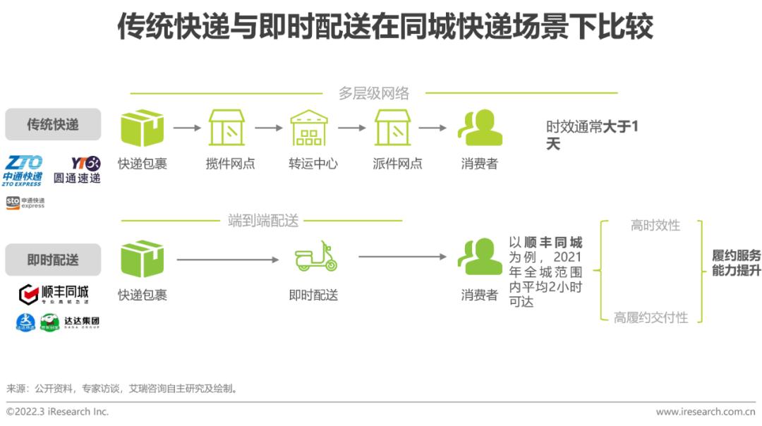 消费者对于时效的需求逐步提高,引导同城快递等服务通过即时配送服务达成