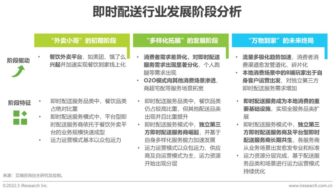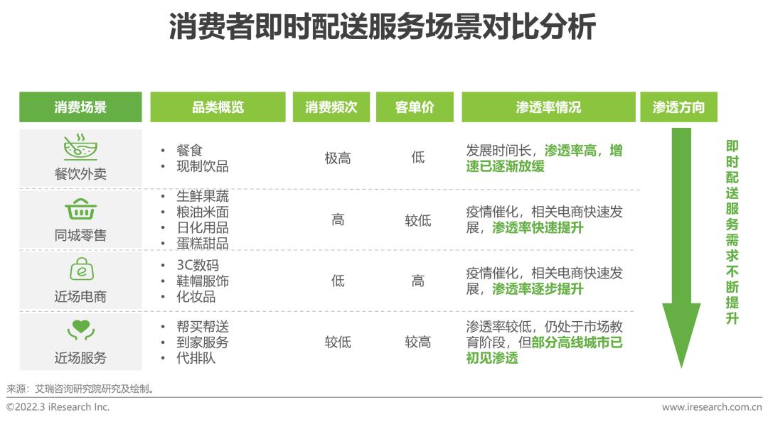 用户即时消费需求增强下商业场景的创新,对即配服务商新场景下的配送服务提出了更高要求