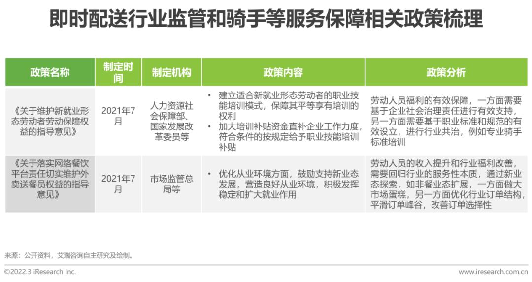 以民为本是我国政府长期的政策关切,随着即时配送行业逐步成为我国闲散劳动力的重要就业途径之一,我国政府也出台系列政策强化对即时配送行业的监管以及对骑手等从业人员的服务保障。《关于维护新就业形态劳动者劳动保障权益的指导意见》提出,”建立适合新就业形态劳动者的职业技能培训模式,保障其平等享有培训的权利。”以及”加大培训补贴资金直补企业工作力度,符合条件的按规定给予职业技能培训补贴”。即时配送服务商进行运力培训,提升从业人员职业能力,正成为行业新增量。