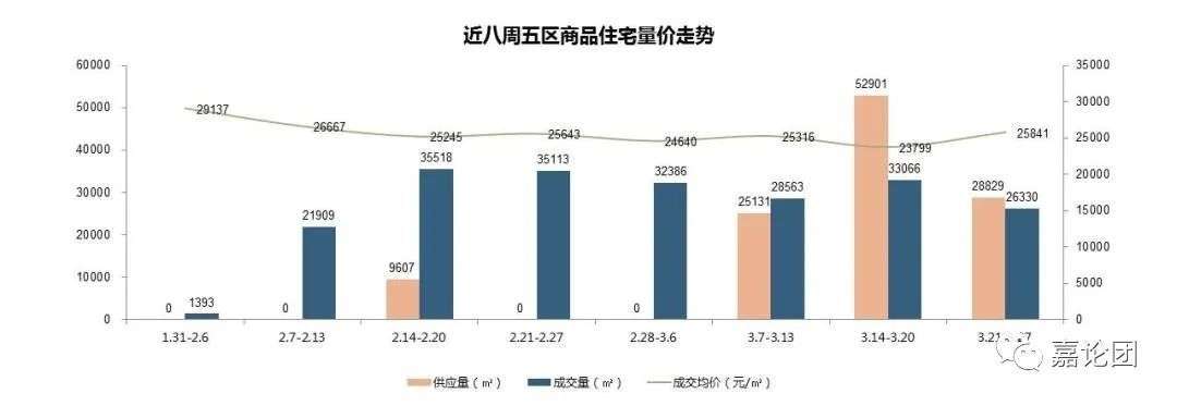 嘉论市场研究中心统计显示,近六周福州五区商品房住宅成交量变化不大,均在2600套以上;成交价格也变化不大,上周的成交均价为25841元/平方米。