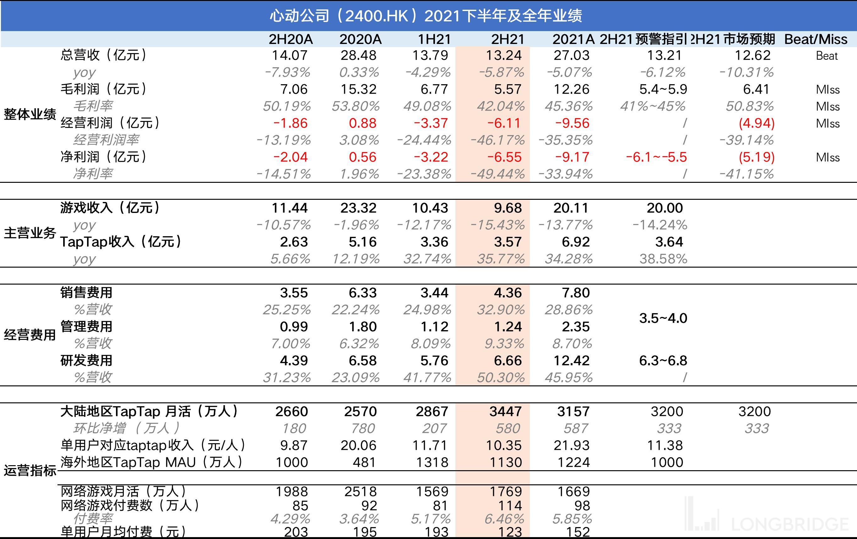 1、下半年总营收 13.2 亿,同比下降 5.9%。下半年游戏的监管环境更差,未成年保护监管、游戏广告监管、版号停发三管齐下,对心动的游戏以及 TapTap 是刀刀见血。并且心动的存量游戏目前也大多到了手游生命周期的后半段,流水下滑难以避免。